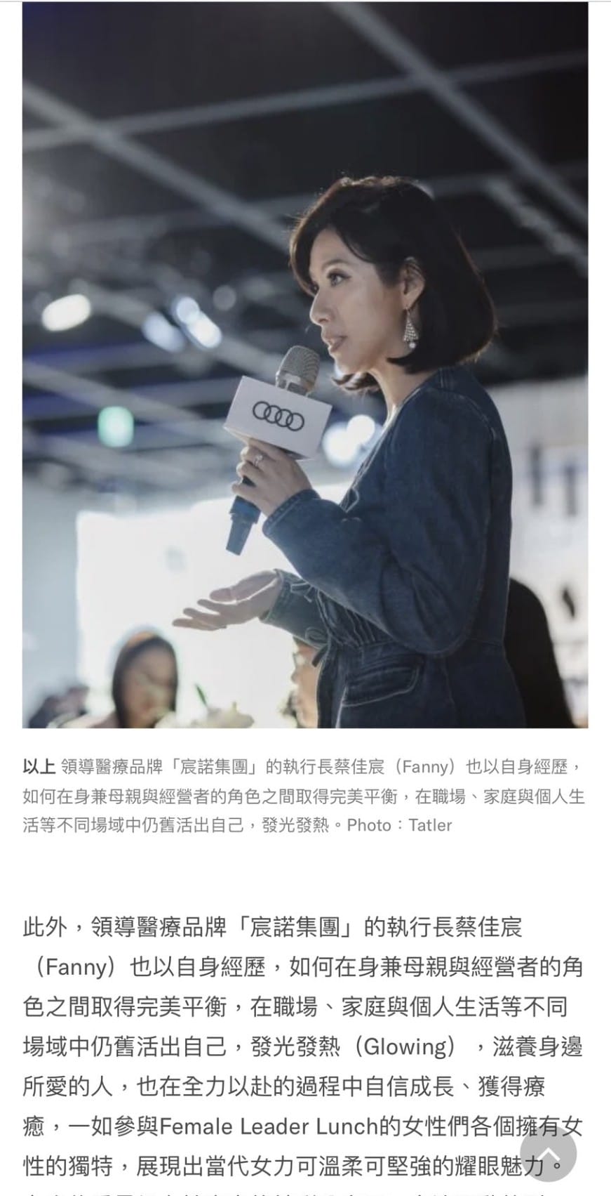 Fanny Tsai 在 female leader lunch 中分享自身經歷,如何在職場,家庭,個人生活等不同領域,在扮演不同角色之間取得平衡,仍舊活出自己,發光發熱。